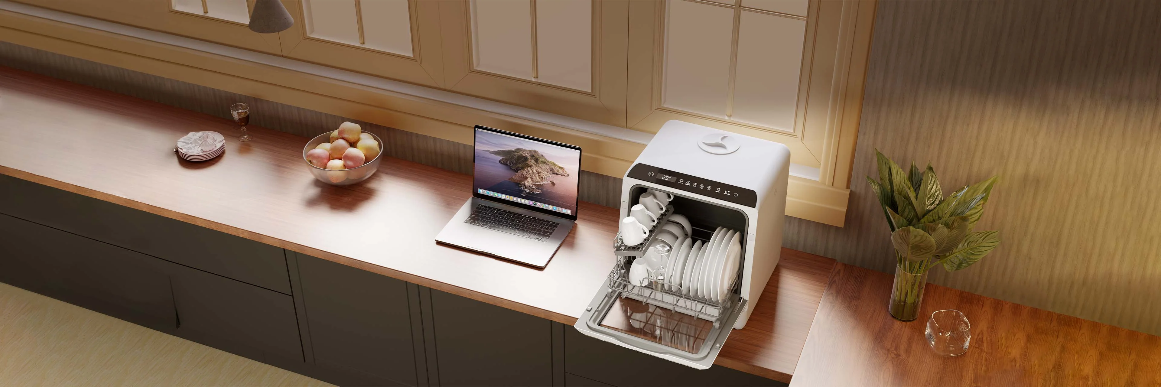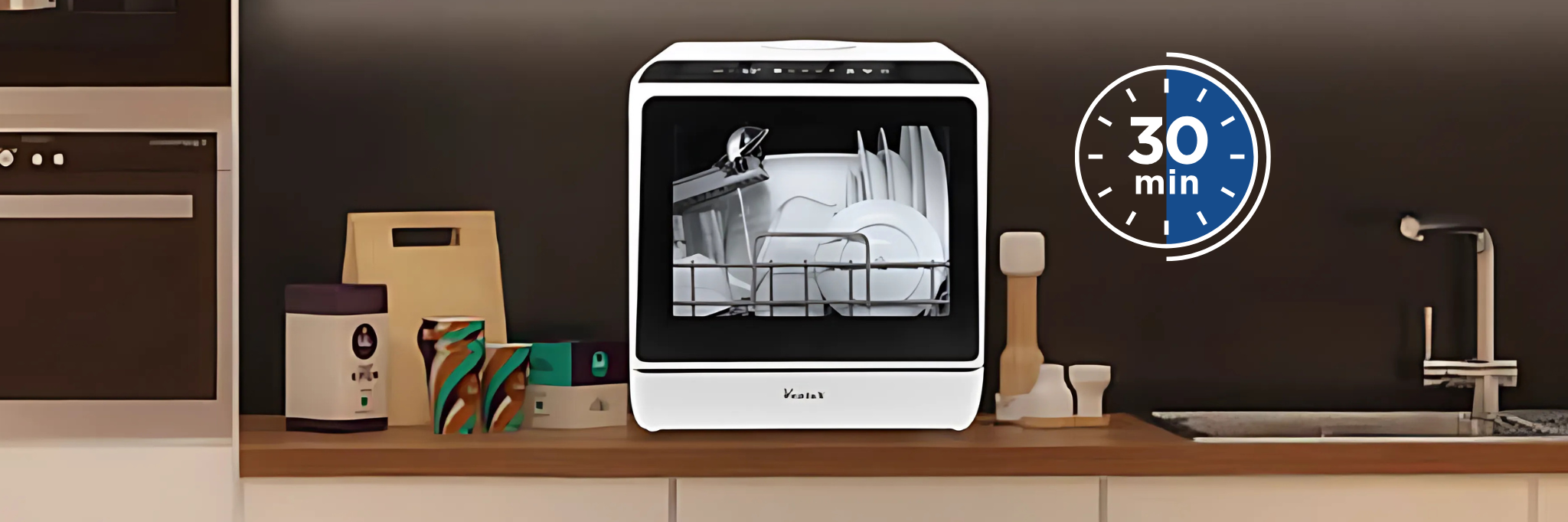 The Ventux Mini 01 features a built-in UV light sterilizer, providing an extra layer of hygiene by eliminating bacteria and ensuring your dishes are not only clean but also thoroughly sanitized.